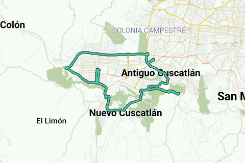 Salimos del cafetalon, sobre el paseo El Carmen, una cuadra, luego viramos a la izquierda sobre la 5 ave. Norte, seguimos recto hasta llegar al bulevar sur, en sentido hacia el puerto de la libertad, al llegar al redondel Utila, seguimos la carretera al puerto hasta llegar al centro comercial La Joya, retornamos y tomamos el bulevar Nuevo Cuscatlan, hasta llegar al redondel Holsin (Santa Elena), luego seguimos el Bulevar Orden de Malta, hasta llegar al Bulevar Luis Poma, seguimos recto, al llegar al segundo redondel, retornamos por el mismo bulevar hasta llegar a Pricesmart, viramos a la derecha, hasta llegar a la calle Conchagua, continuamos, hasta llegar a la calle Xochiquetzal, viramos a la derecha para continuar con la avenida Teolt, al llegar a la calle Cumbres De Cusclatlan, viramos a la izquierda, hasta llegar a Antiguo Cuscatlan, luego nos dirigimos en sentido a la avenida Jerusalen, pasando por el desnivel, hasta llegar a la Monseñor Romero, en dirección a las Delicias, para luego tomar el bulevar sur, hasta el retorno donde estaba el ex rastro, para luego subir en dirección hacia Santa Tecla, y así llegar al cafetalon...