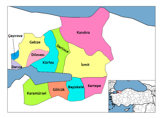 Su capital, Kocaeli o Izmit, es considerada como una ciudad portuaria, que aunque cuenta con playas, no es recomendable nadar en ellas. La capital se localiza a una hora cuarenta y cinco minutos en autobús de Estambul, Turquía y a 12 horas en tren de Ankara, la capital del país. También es conocida por tener el mejor pişmaniye de Turquía.