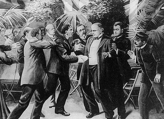 El asesinato de William McKinley, el vigésimo quinto presidente de los Estados Unidos, sucedió el 6 de septiembre de 1901 cuando fue tiroteado y fatalmente herido,[1] en el interior del teatro Templo de la Música durante la Exposición Panamericana realizada en Búfalo . Saludaba al público cuando Leon Czolgosz, un anarquista, le disparó dos veces en el abdomen. McKinley murió el 14 de septiembre de la gangrena causada por las heridas de bala. McKinley se convirtió en el tercer presidente estadounidense asesinado, después de Abraham Lincoln en 1865 y James A. Garfield en 1881.