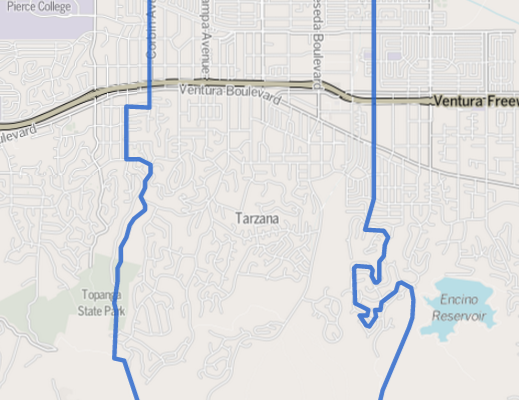 Tarzana es un distrito de Los Ángeles, rodeado por Reseda al norte, Woodland Hills al oeste, Encino al este, y las Montañas de Santa Mónica al sur.