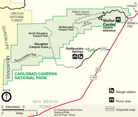 El Parque Nacional de las Cavernas de Carlsbad es un parque nacional de los Estados Unidos localizado en el sureste de Nuevo México, en la sierra de Guadalupe, en la misma cordillera que el parque nacional de las Montañas de Guadalupe.