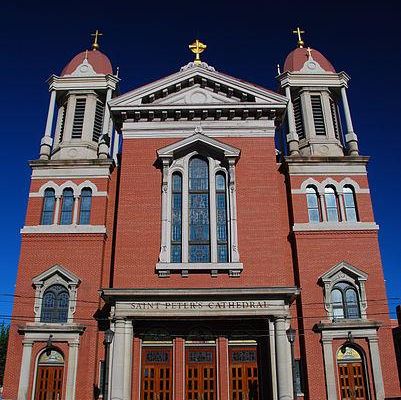 La iglesia fue construida en 1867, como la iglesia parroquial de San Vicente de Paul. En 1883-4 se emprendió un proyecto para remodelar y embellecer la iglesia, que entonces era la iglesia central de la diócesis, y el 28 de septiembre de 1884, la nueva iglesia madre de la diócesis fue consagrada por el arzobispo PJ Ryan, de Filadelfia, y su nombre cambió a catedral de San Pedro. El complejo de la catedral incluye la rectoría adyacente y el convento.