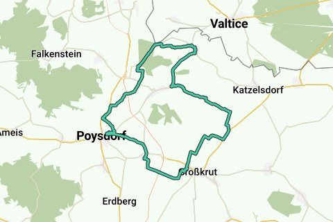 Freinez-vous un peu pour visiter la ville de Pfarrkirche Poysdorf. Une belle promenade. Mais arrêtez-vous un instant pour une pause café ! Si vous souhaitez profiter ou "demeurer" un moment : arrêtez-vous à l'église (Château Walterskirchen). Peu à ajouter à cet excellent itinéraire.