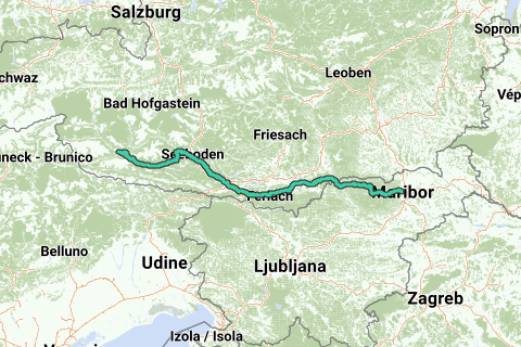 Itinéraire de pèlerinage pour vélos de course entre Maribor et Lienz. Les villes suivantes se trouvent sur la route : Maribor, Villach et Lienz.