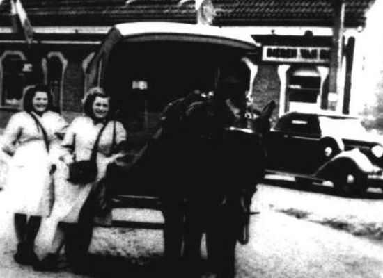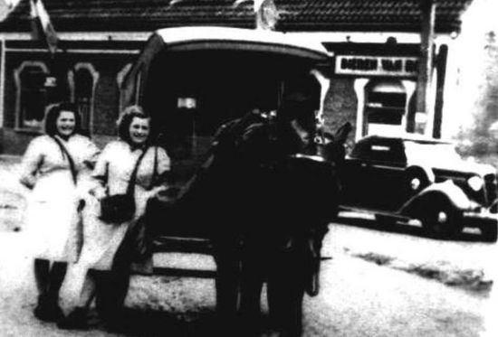 À cet endroit se trouvait l'ancienne boulangerie Brackman. Sur la photo, vous pouvez voir le chariot du boulanger avec les deux filles du boulanger Richard Brackman : Cecile et Agnes.