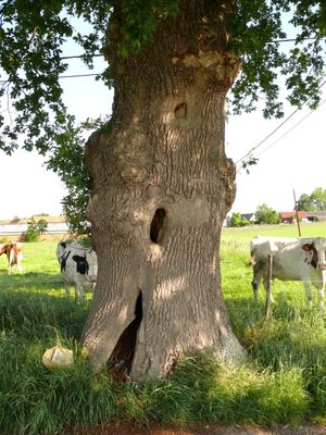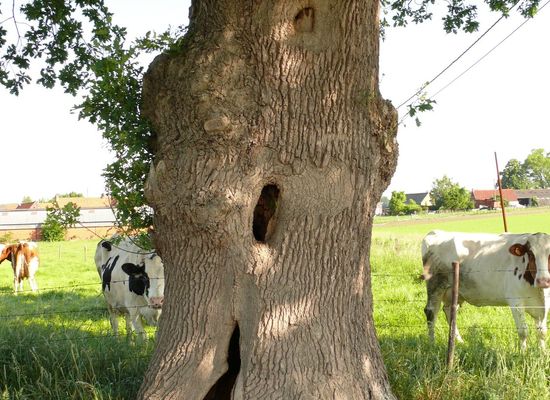 Le chêne dentelé est situé sur le domaine public à environ 10 mètres de l’intersection avec Pladutse et Schaapsputte. L’arbre est probablement encore un vestige de l’héritage du 18ème siècle que nous voyons sur la carte du Cabinet des Ferrari. L’arbre a un tronc creux et mesure une circonférence du tronc d’environ 4 mètres.