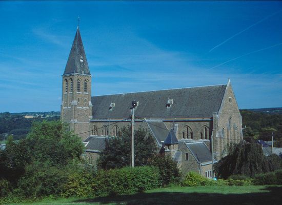 L'église Saint-Hubert est située dans la partie haute du village appelée "le mont" et fut construite en 1900 sur l'emplacement d'un temple très ancien dont les origines remontent au XIIIè s., de style ogival, exécutée en grès et en calcaire du pays. Dans le parvis de l'entrée, pierre tombale de Jean d'Argenteau, comte d'Esneux au XVIIè s., deux confessionnaux Louis XIV, fonts baptismaux du XIVè, un banc de choeur Régence, une statue de Saint-Hubert en bois peint de l'école de Del Cour. Visitable lors des offices.