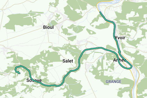 Départ de l'Auberge de Jeunesse de Namur, avenue Félicien Rops à 5000 Namur vers le RAVel ligne 150 A dans la vallée de la Molignée. Itinéraire le long de la Meuse dans la première partie puis sur la ligne 150 A (cette partie est régulièrement ombragée).