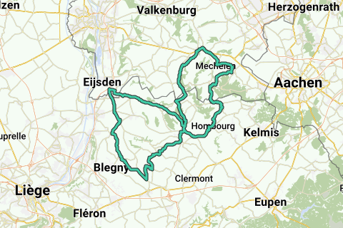 Ascensions: Plankerweg Teuven (B). Croix de Charneux (partiellement) Val-Dieu (B). Côte de Charneux Charneux (B). Soldat Charneux (B). Rue Lt. Pirard Dalhem (B). Magnebos Veurs (B). Gare de la rue de la Hombourg (B). Bommerigerweg Malines. Akerstraat Malines. Fichiers Rott. Vijlenstraat Vijlen. Altimètres: 903. Arrêt café: de Laathof, Langstraat 3, Mesch.