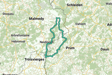 Wirtzfeld-Bullingen-Honsfeld-Halenfeld-Valender-Schonbrun-Alfersteg-Weppeler-Steinebruck-Lommersweiler-Maspelt-Bracht-Weweler-Oberhausen-OUREN-Lutzkampen-Habscheid-Brandscheid-Schwarzer Mann STOP 75km-Auw bei Prum-Manderfeld-Holzheim-Murringen-Krinkelt-Wirtzfeld