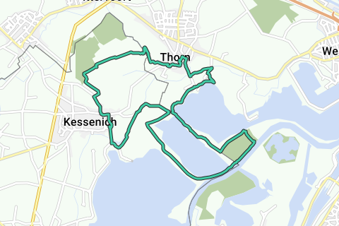 Le sentier passe ensuite par Kessenich (B), tu gravis brièvement le monticule du clocher de Kessenich, et au nord de Kessenich, tu marches le long et à travers la réserve naturelle de Vijverbroek : une forêt de aulnes (une partie de cette zone peut vraiment être humide ici). Il y a aussi un chemin en planches. Juste au-dessus de la frontière, de nouveau aux Pays-Bas, tu marches le long de l'Itterbeek en retour vers Thorn et ensuite à travers le beau Thorn jusqu'au parking.