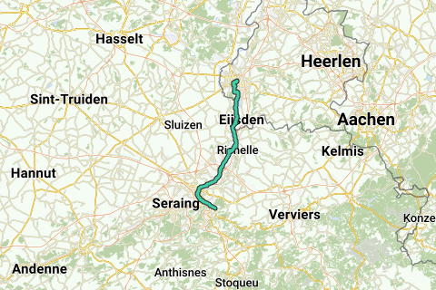 De la sortie cyclable 32 au terminus de la « Ligne 38 » via la « Maasroute » jusqu’à la « Heuvelland-Fietsroute » à Maastricht (les deux premières sont également des itinéraires dits RAVeL).