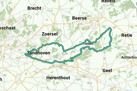 Oelegem-Grobbendonk-Herentals-Lichtaart-Terlo-Corsendonk-Hoge Rielen-Tielen-Poederlee-Vispluk-Pulderbos-Zandhoven-Oelegem