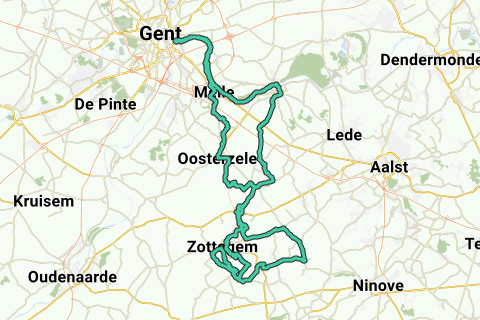 Itinéraire de cyclisme relativement plat, qui nous mène de noyau de village en noyau de village : Wijnhuize, Woubrechtegem, Oombergen, Saint-Lievens-Houtem, Westrem, Massemen, Wetteren, Gijzenzele, Oosterzele, Godveerdegem, Erwetegem, Strijpen...