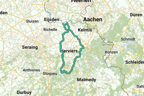 S.M.V. - S.P.V. - Magis - Aubel – Gorhez – Wadeleux – Champiomont – Bouxhmont – Ligne 38 – Herve – Sur la Commune – Bois de Herve – Xhendelesse – Soiron – Wegnez - Pepinster - N690 vers Theux - Spixhe - droite La Reid - N606 - Basse Desnié - Winanplanche - Crêpe - Neubois - Nivizé - Lac de Warfaaz - Tiège - N629 - Surister - Jalhay - Bétâne - Membach - Balen - Haies - Henri-Chapelle - Merckhof - Hagelstein - De Plank - S.M.V.
