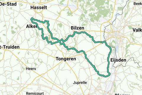 Via Kortessem, Vliermaalroot, Henis, Genoelselderen, Millen, Boirs, Hautain, Heur le romain, Haccourrt, Halembay, Ebenemael, Kanne, Vroenhoven, Vlijtingen, Rosmeer, Letenbberg, Hoeselt, Vliermaal, Vrolingen