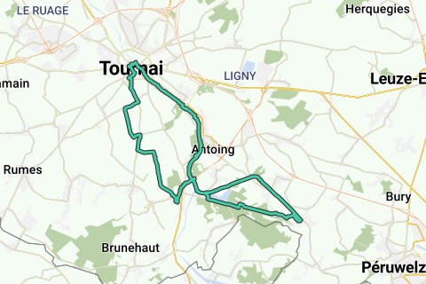 On longe l'Escaut par le chemin de halage avec une petite interruption d'un km un peu avant le pont d'Antoing, prendre la piste cyclable, puis avant le pont on retrouve le chemin de halage. A partir de Péronnes on suit le chemin de halage du vieux canal (très beau) Après Callenelle on se dirige vers le chemin de halage du canal Nimy Blaton Péronnes. Le retour se fait par l'intérieur des terres qui donne un bel aperçu de la campagne tournaisienne.