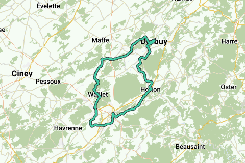 Belle balade à vélo à travers la Famenne. Il y a quelques itinéraires non pavés qui rendent cette visite inadaptée au vélo de route. Déconseillé par temps très humide. Durbuy et Hotton offrent de bonnes opportunités pour une pause déjeuner.