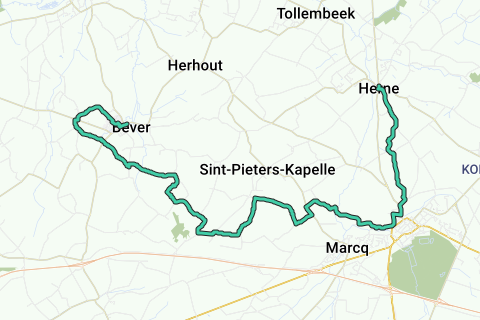 Un peu plus de 17 km de marche le long de la défunte VIP (Foot tour in Pajottenland) de Herne à Bever, pour 1/3 sur des routes lentes.