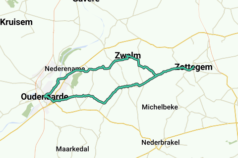 Cet itinéraire de vélo de route a été téléchargé via l'outil fietssnelwegen.be/routeplanner. L'aller passe par Zwalm, le retour par St. Maria Horebeke.