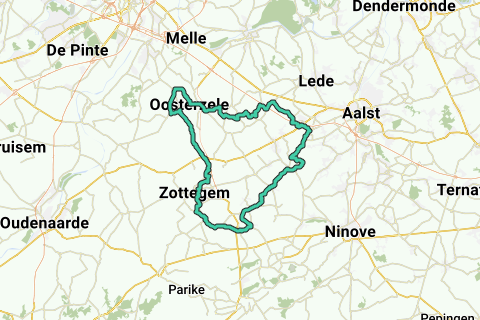 Trajet plat et en boucle qui nous fait passer entre autres par Steenhuize, Woubrechtegem, Aaigem, Mere, Vlierzele, Oosterzele, Moortsele, Scheldewindeke, Balegem, Leeuwergem et Erwetegem. L'accent est mis au maximum sur des routes sans voitures...