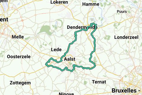 Itinéraire autour d'Aalst avec différentes pentes douces. Ne peut pas être réalisé avec un grand groupe, car il y a quelques intersections avec des routes très fréquentées. Itinéraire agréable à travers des chemins qui ne sont pas souvent utilisés dans les itinéraires cyclables.