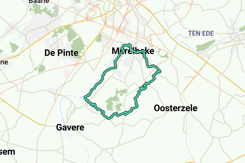 Tu démarres au Sportpark Ter Wallen et tu te diriges directement vers le centre, où tu passes devant la bibliothèque, la maison communale et culturelle. Après le quartier de Roskam, le trajet monte légèrement en direction des champs d'essai de l'IVLO, où tu croises le point de connexion VTT avec Melle. Tu suis les chemins de campagne jusqu'à la flèche non-pointue de Bottelare et tu atteins ainsi les champs d'essai de l'UGent et les Ketskes jusqu'au pied du Zink. Une montée raide te conduit au point de connexion VTT d'Oosterzele et au centre du village de Munte. Tu te diriges vers Baaigem, en direction de Ganzendambos, que tu laisses sur ta droite. À Vurste, tu es guidé à travers les Merelbeekse Scheldemeersen, où tu passes en chemin le Schelderodeput et le St-Elooiput.