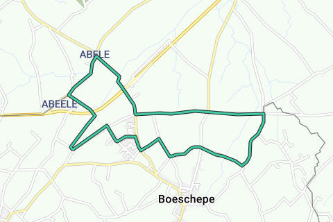 13. Randonnée de la randonnée 'Pas le long de la Schreve'. La frontière est suivie aussi fidèlement que possible. Cette randonnée commence à la Rue de la Lappe/Lappestraat à Boechepe (Poperinghe) et te mène vers le village d'Abele et retour. Les 28 randonnées circulaires sont également disponibles sur le site www.stappenlangsdeschreve.com.