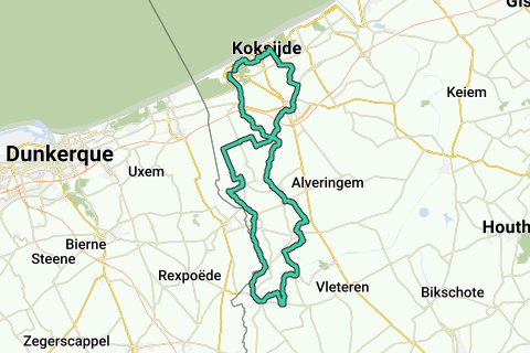 Itinéraire de points de rencontre cyclables le long de la frontière française de De Panne (et retour).