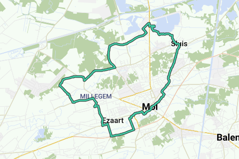 Mol Zentrum, Ginderbuiten, Sluis, Achterbos, Ezaart, Ginderbroek est une courte et belle balade à vélo qui alterne entre des routes pavées et semi-pavées.