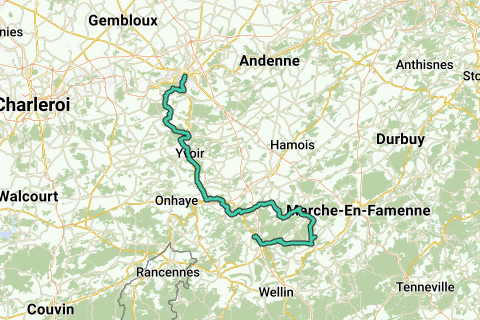 3ème étape d'une boucle passant par Braine le Comte, Ronquière, Walcour, Maredsous, Houyet, Rochefort, Citadelle de Namur, Temploux, Abbaye de Villers...