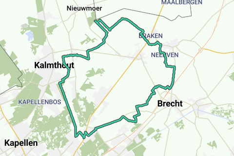 Continuez le long de la circulation des petits ponts, du Gunfire Museum et du terrain de baseball des Brasschaat Braves. Où il y a un virage à droite pour KP 38, continuez tout droit dans la Ploegsebaan. Lorsque vous quittez la forêt, tournez juste avant le canal anti-tanks à gauche dans la Garçondreef et dirigez-vous vers KP 37. Après un champ, tournez à droite et passez entre des bornes dans l'Eikendreef. Suivez-le jusqu'à la Bredabaan. À gauche jusqu'au point de départ.