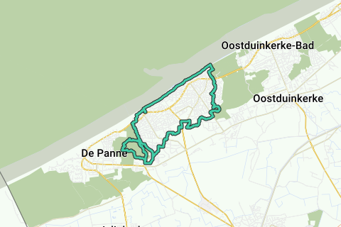 Suis à travers la porte les poteaux bleus vers la gauche. Avance de 500 mètres, puis tourne à nouveau à gauche (poteaux rouges). Après environ un kilomètre, tu arrives à nouveau aux poteaux bleus jusqu'à KP 30. Va à KP 29 et prends le sentier à gauche à travers la forêt. À l'embranchement, suis le sentier de gauche et tu arriveras à nouveau au banc de pique-nique. Cinquante mètres plus loin, à KP 28, tourne à droite dans le étroit Sparrenlaan vers KP 34. Au bout de la rue, tourne à gauche. En passant devant une porte verte ouverte, tu arrives sur un chemin de dunes. Sur la route, tourne à droite et passe devant Home Mathilde Schroyens, puis à gauche dans la Dageraadstraat. À la fin de cette rue, traverse la route et suis le chemin à droite. Tu es maintenant dans les dunes nord et continues de suivre le chemin jusqu'à KP 34. Tourne à droite (à travers une porte) et suis les poteaux orange jusqu'à KP 36, où tu traverses un chemin en terre. Continue tout droit (porte). À KP 37, tourne à gauche en direction de KP 43. Sur la route, prends à gauche la piste cyclable. Devant toi, tu vois la Süd-Abdijmole en haut d'une dune. Prends le rond-point à gauche et traverse le passage piéton juste avant l'abbaye Ter Duinen. Tu arrives à KP 43. Suis maintenant KP 42. Un peu plus loin, tu traverses à nouveau la route. En face des ruines de l'abbaye Ter Duinen, prends à droite un sentier étroit. À KP 42, tourne à nouveau à droite, dans les dunes en direction de KP 40 (suis les poteaux orange). Sur un chemin plus large, tourne à gauche et suis les poteaux orange. Passe à travers une porte à gauche vers KP 40.