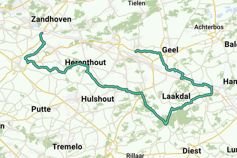 Tout au long de petites routes vers le Café Prinsenhof, puis continue vers le Café De Bierkroeg à Herselt. Plus loin, tu passes devant l'Abdij Van Averbode, où tu peux trouver de nombreux produits régionaux. Point d'arrivée Café T'oud zot à Olen.