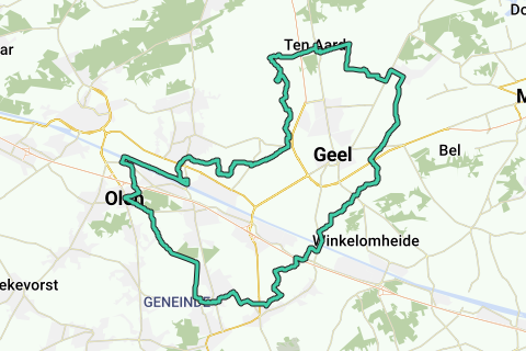 5. Le long de la Grande Nete Au point de jonction 10, tournez à gauche, direction 16. À la petite intersection, tournez à droite et conduisez le long du Wildersedijk jusqu'à la Grande Nete et au point de jonction 16. Ne la traversez pas, mais suivez le chemin le long à gauche, direction 09 jusqu'à N126. Traversez ici la « Grande Nete » et la route et continuez de l'autre côté. De l'autre côté, vous voyez l'abattoir de Geel, à droite la magnifique réserve naturelle de Malesbroek. Le premier petit pont que vous rencontrez, vous le traversez et à la fin du chemin, vous êtes au point de jonction 09. Tournez à gauche, direction 81. À la fin de Zandstraat, à la T avec le seul arbre sur une place, tournez de nouveau à gauche. Passez devant le café De Bliek et traversez un tunnel sous le ring autour de Geel. Au point de jonction 81, tournez à droite vers le point de jonction 03. À la fin de Zandstraat, à la T avec la petite chapelle blanche, tournez à droite. Traversez la route Geel-Mol (N71) et tournez à côté du restaurant De Waag Kievermont à l'intérieur. À la petite intersection, allez tout droit et à l'intersection avec la chapelle, arrêtez-vous à gauche. Traversez le chemin de fer, jusqu'au point de jonction 03. Continuez en direction 02, le long d'une ancienne zone militaire et ensuite à après un tournant, tournez à droite, à travers Amerikalaan jusqu'au point de jonction 02. Là, tournez à gauche dans Belgiëlaan, direction 20, jusqu'à N118. Suivez cela à gauche, jusqu'à ce que vous puissiez tourner à droite dans Ericastraat. Continuez en passant devant le club de tennis Berkven et à travers un paysage calme. La signalisation vous conduit facilement au canal Herentals-Bocholt et au point de jonction 20. Suivez la Vaart à gauche jusqu'au point de jonction 21 près de l'écluse 8, en face des Bloemmolens de Geel. Traversez le canal par les portes de l'écluse et continuez votre chemin, direction 22. Ensuite, tournez dans la Vaartstraat, vers le point de départ.