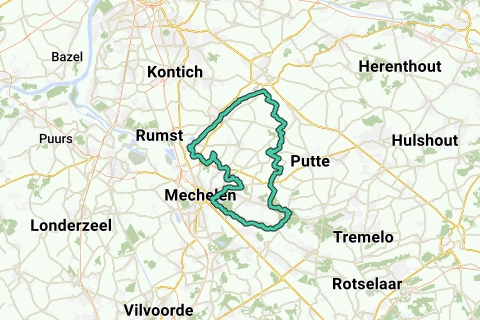À travers l'allée, vous arrivez à la Lange Zandstraat et avec un virage à droite-gauche, vous entrez dans la Kuikenstraat. Continuez à droite sur une ancienne voie ferrée jusqu'aux feux de la route animée Liersesteenweg. Conseil : descendez ici avant ce croisement, car le chemin descend fortement sur quelques mètres. Traversez le croisement et suivez le chemin de fer jusqu'à la Clemenceaustraat. Juste après, tournez à gauche puis immédiatement à droite dans l'Ekelenhoek. Au bout de la rue se trouve le point 65. Suivez Zorgvliet à gauche, en direction de 24. Au croisement T, suivez la Groenstraat à droite, passez sous trois ponts de chemin de fer et à gauche le long de la voie jusqu'au point 24. Ici, vous tournez à droite dans Midzelen et suivez 43.