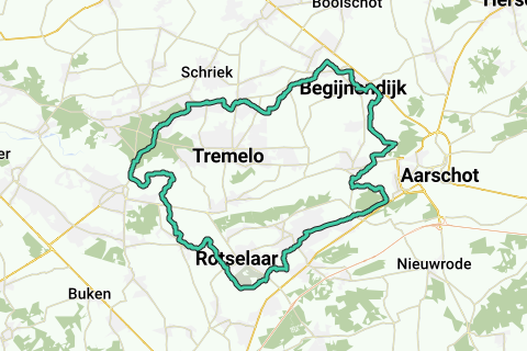 Vous traversez le Grote Laak et continuez vers la Demer et le nœud 92. Traversez la Demer et suivez de l'autre côté le Demerdijk à gauche, en direction de 62. Après 900 m, vous longez les rives du château de Nieuwenland/De Postiljon, maintenant un hôtel et une salle de fête. Ensuite, tournez à droite dans la Beemdenstraat et sortez de la Demer, à travers un paysage agricole ouvert. À la fin de la route, suivez Turfputten à côté de la voie ferrée à droite, en direction de Gelrode. Au nœud 62, tournez à droite, en direction de 66. Traversez la Begijnendijksesteenweg et continuez sur la Baan vers Rotselaar, une impasse définitive pour les cyclistes. La route change de nom pour devenir Heirbaan et est, de ce côté, rendue piétonne par des bornes. Vous parcourez 2 km en terrain vallonné le long de la voie ferrée et à travers le verdure. De retour dans le monde habité, vous découvrez à droite une rangée de magnifiques fermes. À un carrefour surélevé, tournez à gauche dans la Bessenstraat. Tournez à droite et continuez à travers un quartier résidentiel et en passant devant la gare de Wezemaal. Traversez la Langestraat et continuez à travers la Winkelveldbaan. Ignorez toutes les rues secondaires jusqu'à pouvoir tourner à gauche dans la Deutschveldlaan, avec deux panneaux interdisant la hauteur et la largeur maximales des véhicules. Peu avant un kilomètre plus loin, vous comprenez pourquoi. Vous passez sous un étroit tunnel sous la voie ferrée et continuez de l'autre côté jusqu'à un carrefour en T. Suivez l'Abdijlaan à droite, traversez la Grande Losting et choisissez au nœud 66 en direction de 30. Passez sous la voie ferrée par un tunnel et continuez à travers la Drielindenstraat. Ignorez toutes les rues secondaires et continuez jusqu'au croisement avec les feux de signalisation.
