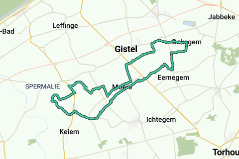 1. Rencontre à l'entrée de l'église ( néo)gothique majestueuse de Bekegem. De dos à l'église, tournez un peu à droite puis à gauche dans la Bevrijdingsweg. Maintenant, vous avancez tout droit pendant un moment, à travers le carrefour (mal visible), en passant devant la Witte Molen. Le nom de la rue est devenu Ossenweg et vous continuez tout droit, à travers le carrefour avec la N368 (= Eernegemsestraat) dans la Pardoenstraat. Serpentez autour de la Klokhofstede (1863) et continuez tout droit au niveau du carrefour. Continuez jusqu'à la route Gistel-Nieuwpoort N 367. Suivez-la à gauche. Ignorez toutes les rues secondaires et tournez directement à gauche dans la Vaartdijkstraat juste après la Waerevaart. Ignorez une rue à droite et tournez rapidement à droite dans la Nieuwlandstraat juste après la station de pompage Moere.