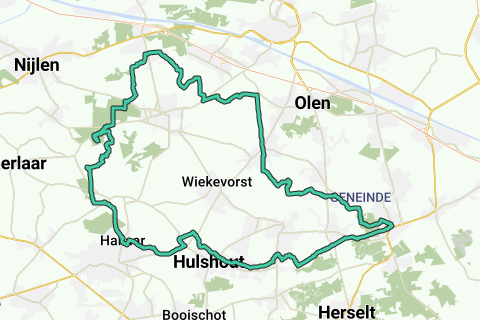 Point de rendez-vous sur le parking près de la chapelle de Kruiskensberg (V) sur la Kruiskensbaan à Herenthout. Avec le parking sur votre droite, continuez jusqu'au point de rencontre 34. C'est ici que commence la balade. Continuez en direction de 22. Après 300 m, tournez à gauche dans un chemin et traversez le bois de Merode. Les flèches vous font d'abord tourner à droite et à un croisement, à gauche. Lorsque vous quittez à nouveau la forêt, tournez à droite et prenez la première route à gauche : Blokt. À une petite chapelle, vous tournez à gauche dans un chemin non revêtu. Passant devant une ferme, le chemin devient asphalté et vous atteignez le point de rencontre 22. Continuez tout droit en direction de 46. Au carrefour, tournez à droite. Vous passez devant le moulin à vent 1 à Bouwel et tournez ensuite à gauche dans la Molendreef. Passant devant le gymnase De Molen, vous tournez à droite avec la route pour arriver au point de rencontre 46. Traversez la Herenthoutse Steenweg et continuez à travers la Langedreef piétonne en direction de 45. À la fin du chemin, tournez à gauche puis à la première route à droite. Traversez un petit carrefour et restez à gauche au premier et au deuxième embranchement. À travers la Zellestraat, vous sortez de Bouwel et continuez à travers un paysage agricole ouvert jusqu'au point de rencontre 45. Choisissez ensuite en biais à gauche, en direction de 44. Au croisement en T, tournez à gauche puis plus loin à droite. Vous comprendrez tout de suite pourquoi cet endroit s'appelle De Bergen. Le chemin monte doucement. Tournez à gauche dans la petite route asphaltée et traversez un bosquet jusqu'au croisement en T. Tournez à droite jusqu'à la Herentalsesteenweg, puis à droite à nouveau sur une piste cyclable en planches. Ensuite, tournez à gauche avec un virage en épingle dans Oosterhoven. Suivez cette route jusqu'à ce que vous puissiez tourner à droite dans Klein Baan. Vous passez devant la Heidehoeve et à la fin du chemin, tournez à gauche pour Grothoeve. Dans le jardin de Grothoeve se trouve une grotte de Lourdes. Le long de l'ancienne levée de chemin de fer au croisement avec la chapelle, tournez à droite et peu avant le panneau d'entrée de Noorderwijk, tournez à droite et suivez le long du club de pêche 't Schipperke jusqu'au point de rencontre 44. Tout droit, passant devant le Hogewegmolen 2 de Noorderwijk jusqu'au point de rencontre 43. Tournez à droite et suivez l'ancienne levée de chemin de fer de la ligne 29. Vous passerez devant le Paviljoen 7 (ancien abri de gare) et continuerez à travers Morkhoven avec le café Berkemus jusqu'au point de rencontre 67. Là, tournez à gauche, en direction de 80, loin de l'ancienne voie ferrée. À la première petite intersection, tournez à droite et à la fin du chemin, à gauche jusqu'au croisement avec une chapelle en pierre. Tournez à droite et à la fin de la Landbouwstraat, tournez à gauche sur la petite route en béton Elsbroek. La signalisation vous conduit maintenant sans erreur au Elzenhof, à l'Elsbroekhoeve, à 't Kievitshof et aux terrains de football de KFC Immervoort jusqu'à la très fréquentée Olenseweg. Traversez-la et continuez jusqu'au point de rencontre 80. Tournez à droite, en direction de 83. Après quelques virages, continuez sur un chemin non revêtu. Lorsque vous revenez sur l'asphalte, tournez à droite. Entourez un terrain de football avec la Jagersweg et laissez Overwijs à gauche et Gooreinde à droite. Le chemin devient non revêtu et après la Hollandse Dreef, tournez à gauche dans la forêt. Une étoile avec 8 chemins. Allez jusqu'à l'étoile, le point central des Beeltjens, où 8 chemins se croisent. Au début du 18ème siècle, les Beeltjens ont été aménagés par le maréchal de champ Jan Philips Eugen de Merode comme territoire de chasse. Il s'est inspiré des forêts de Versailles en France. Continuez jusqu'à la maison du garde 3, maintenant une auberge de jeunesse. 'Chut ... Ici se reposent les cyclistes, les randonneurs et les flâneurs !! Tout le monde est bienvenu.' Ici, vous pouvez essayer un flâneur. Il y a une aire de jeux pour les enfants et une forêt de contes de fées. Tournez à gauche au parking de l'auberge de jeunesse, puis à droite dans la Hollandse Dreef. En face du château d'eau, tournez à droite dans le parc du château. Vous passez devant la salle de sport et le château de Jeanne de Merode 4 - appelé le Nouveau Château à Westerlo et maintenant des vélos supplémentaires près de la mairie - jusqu'au point de rencontre 83. Traversez la Beeltjensdreef en direction de 85. À la fin du joli double allée de hêtres, après un parking, vous arrivez sur une route de circulation. Suivez-la à droite et tournez ensuite à gauche dans la Zoerleberg. Vous passerez devant le club de pêche De Nieuwe Lippers et à travers un quartier résidentiel. Traversez la N152 et continuez à travers Stippelberg. Après 2 km entre les constructions lâches, tournez à droite dans la Kwachtstraat. Vous traversez un petit bois et ensuite à gauche dans le Locht. Ensuite, tournez à droite dans la Holleweg et à travers la Molenweg, vous arrivez à un arrêt. Traversez la route et continuez par la Heiweg. Ensuite, tournez dans la Grensstraat et passez devant le panneau d’agglomération de Hulshout jusqu'au point de rencontre 85 à l'ancienne voie ferrée Herentals-Aarschot. Continuez en direction de 99. Ne vous laissez pas distraire par les routes secondaires et parcourez généreusement 3 km entre les constructions lâches, d'abord sur la Heibaan, ensuite à travers la Peerdekerkhofstraat jusqu'à ce que vous atteigniez le croisement avec le Kaasstrooimolen 5 à Bruggeneinde. Tournez à droite jusqu'à la fourche avec la chapelle et arrêtez-vous ici à droite. Les Averegten. Traversez la Wiekevorstsesteenweg et choisissez à point de rencontre 99 à gauche, direction 93. À la fin de la Buntstraat, tournez à