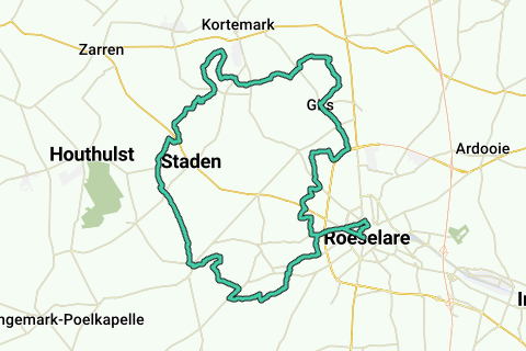 Cet itinéraire décrit une promenade à travers une région rurale. Le paysage y est très varié. Cela est surtout dû à l'alternance de sable et de sable argileux, ce qui se remarque aussi dans la végétation et le relief. Parmi les sommets les plus marquants figurent le Vosseberg, le Stadenberg et le Gitsberg. Vous partirez de Roeselare et traverserez Oostnieuwkerke, Westrozebeke, Staden, Kortemark, Gits et Hooglede. Vous passerez par le Vijverbos, le Stadenberg, le Gitsberg et le cimetière militaire allemand de Hooglede. Il est permis de descendre.