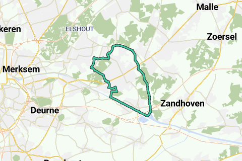 Départ du Vrieselhof à Oelegem via le canal antichar et retour par 's Gravenwezel, Schoten, Schilde et le canal Albert jusqu'au point de départ.