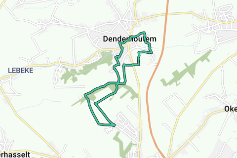 Départ à l'église de Denderhoutem. Des places de parking sont disponibles. De bonnes chaussures de randonnée sont recommandées. Chemins élevés avec des dômes verts.
