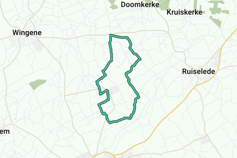 A droite de l'église (V), tu prends le Brugstokwegel (cul-de-sac). En passant par la Torenstraat, tu accèdes à un chemin entre les champs en direction des serres. De retour sur la route pavée, tu tournes à droite. Suis l'Uitweg et passe devant une zone de reproduction (1). Tu traverses une route relativement fréquentée et suis à droite la Bilkbosstraat. Prends le premier embranchement à droite. Suis maintenant la Bilkbosstraat 9-15. Tout droit jusqu'à un carrefour en T. Ici, tourne à gauche, Waalbosstraat. Prends le premier embranchement à droite. Après environ 50 m, passe devant un armoire électrique sur le côté gauche de la route. Au niveau de la maison portant le numéro 23, tourne à gauche. Suis ce chemin jusqu'à peu avant une route très fréquentée. Avant la maison portant le numéro 6, tourne à droite, Kleiweg. Là où la route asphaltée tourne à droite, continue tout droit sur le chemin. À droite, tu as une élévation (jusqu'à 27 m) dans un paysage autrement très plat et une belle vue sur la vallée du Klapwullebeek. Le chemin devient à nouveau une route asphaltée. Au bout de la Westakkerstraat, au carrefour en T, tourne à droite. Suis ce chemin jusqu'au Schoutskruis (2). Tout droit dans la Schoutskruisestraat en direction de FKP 89. À droite au prochain embranchement, la Grietjensgalgestraat. Au petit calvaire sur la Galgestraat, tourne à gauche. Suis la Galgestraat jusqu'au carrefour en T avec l'Abeelstraat. Tourne à droite et après environ 30 mètres, juste après le petit calvaire de la Vierge de Salette (3), tourne à gauche. C'est la Rijkegemkouterstraat. Après avoir traversé le Kapellebeek, suis cette route légèrement sinueuse en ignorant toutes les rues secondaires. Ainsi, tu arriveras finalement à 't Biesgat (4). Ici, tourne à droite. À hauteur d'un grand hangar sur la droite, continue tout droit sur la Tommekouterstraat. Au bout, tourne à droite, Kapellebeekwegel. Doucement vers le haut, avec vue sur l'église de Schuiferskapelle. À la fin, fais attention ! Traverse la route très fréquentée en biais et tourne immédiatement à gauche dans la Steenakkerstraat. Suis ce chemin en passant devant le hameau d'Elshoek. Au carrefour en T, tourne à droite, Dosseweg. À un poteau électrique avec une lampe à gauche, engage-toi dans le chemin. Tu te diriges maintenant vers le village. Continue tout droit jusqu'à l'église.