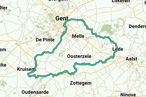 Itinéraire : Schelde - Laarne - Wetteren - Lede - Erondegem - Vlierzele - Sint-Lievens-Houtem - BERG - Balegem - Dikkele - Hermelgem - Lede - LEDEKERKWEG - Huise - Nazareth - Schelde