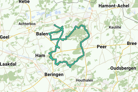 Tour de vélo ombragée à travers Bosland avec départ à Balen-Wezel. Le long du canal de Beverlo, port de Tessenderlo, Beverlo, vallée du ruisseau noir, à travers la zone militaire (demander au préalable si la zone est ouverte), Hechtel, autour de la forêt de Pijnven, à travers les cimes des arbres (272), zone de Keiheuvel, canal de Beverlo retour au point de départ.