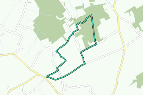 Une promenade le long de sections non pavées à travers des forêts et le long des champs.