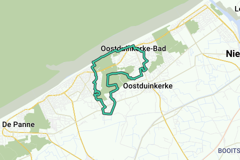 De Witte Burg à Duinparklaan vers la plage, puis à travers St André jusqu'à Koksijde le long de la ligne d'eau ; puis le long de Hoge Blekker et de la piscine jusqu'à l'Alten Schultchen et ensuite à travers Doornpanne pour revenir à Witte Burg, fin