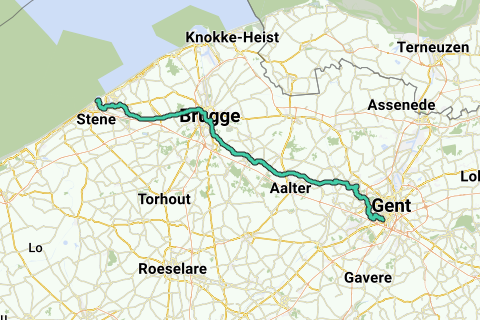 La principale différence est que le canal Gand-Bruges est suivi plus longtemps, tandis que le détour par Nevel est "coupé".