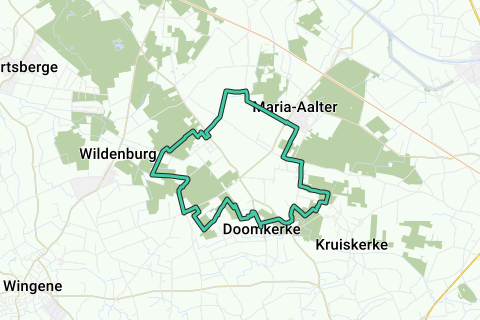 Aujourd'hui, vous explorez les environs boisés de Sint-Pietersfeld et les 'Tours de Ruiselede', qui serviront de guides tout au long de la randonnée. Des zones de bruyère et de tourbière, qui bordent le Bulskampveld, ont depuis été reboisées ou cultivées. Certaines zones, comme les forêts de Vorte et les lacs de Gulke, sont des témoins silencieux d'autrefois. Le changement entre passages forestiers, terres agricoles et prairies humides assure une belle randonnée. Des routes calmes avec peu de circulation relient les différentes parties. Vous commencez à Doomkerke, une commune qui n'est apparue qu'au cours de la seconde moitié du 19ème siècle dans le Bulskampveld.