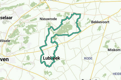 Rendez-vous au parking du château de Horst dans la Horststraat à Holsbeek (V). Vous êtes au point de rencontre 65 et vous roulez sur la Peerseweg en direction du point de rencontre 98. En biais à droite dans le champ, vous voyez la chapelle Saint-Joseph (début du 19e siècle) sous un tilleul. Au point de rencontre 98, tournez à droite dans la Galgenbergstraat jusqu'au carrefour avec le point de rencontre 99. Tournez à gauche en direction du point de rencontre 20. Vous continuez toujours sur la Galgenbergstraat et arrivez à la Houwaartsebaan. Tout droit jusqu'à la route prioritaire. ● À gauche sur la piste cyclable en pointillés et à la petite intersection, continuez tout droit sur un chemin asphalté plus étroit, en passant devant le panneau d'entrée de Lubbeek, puis tournez à droite dans la Kroonstraat. Suivez-la jusqu'à la fin. Tournez à gauche sur la piste cyclable étroite, à côté de la large route en béton et passez devant le café 't Lanterreke. Vous arrivez à la N2 de Diest à Louvain. Traversez-la tout droit et suivez Happyland jusqu'au carrefour avec la petite chapelle au point de rencontre 20. ● Roulez avec un coude gauche-droit tout droit dans la Driesweg jusqu'au point de rencontre 66. Tournez à droite en direction du point de rencontre 67, sur le Paashofweg creux et continuez en passant devant un verger. Au premier carrefour, tournez à gauche. La route s'appelle toujours Paashofweg. Continuez à passer devant une grande exploitation agricole jusqu'au croisement avec une route en béton. Tout droit sur le Tegelbergweg jusqu'au point de rencontre 67. Tournez à gauche en direction du point de rencontre 68 via Herendaal. Au carrefour, tournez à droite dans le Dellenhofweg. Après un large virage à droite, tournez à gauche dans la Tombestraat. Suivez-la jusqu'au point de rencontre 68. Tournez à gauche en direction du point de rencontre 19 via Heide. Puis tournez à droite dans Heideken et continuez jusqu'au point de rencontre 19.